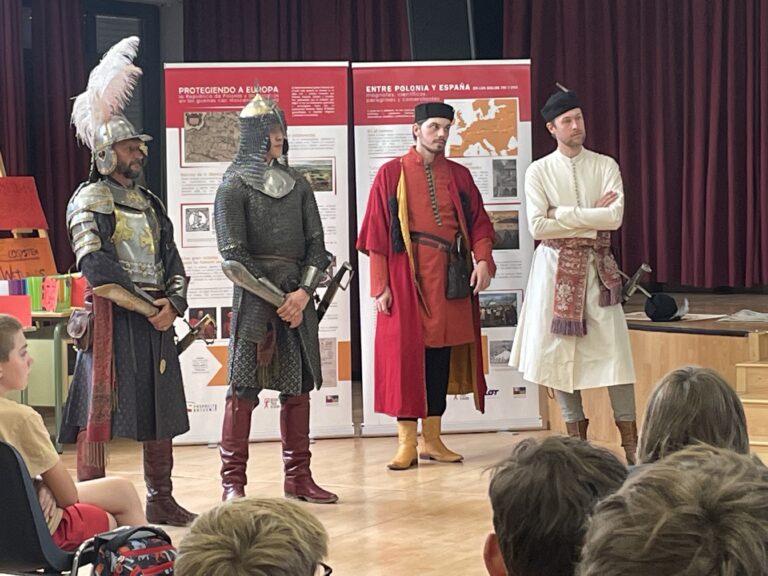 2023 – Połączyliśmy udział w drugiej edycji imprezy Yecla – Siglo de Oro z aktywnościami skierowanymi do środowisk polonijnych. Stworzyliśmy mały projekt „Polonia. No tan distante”, dzięki któremu odbyliśmy lekcje żywej historii dla szkół do których uczęszczają polskie dzieci: Szkoła Polska przy Ambasadzie (ORPEG) jak i lokalnych szkół hiszpańskich. (https://madryt.orpeg.pl/2023/06/02/lekcja-zywej-historii-z-grupa-rekonstrukcyjna-pospolite-ruszenie-z-krakowa/). Działanie to spotkało się z ogromnym uznaniem wśród odbiorców i wskazało na znaczny potencjał w tym obszarze. Stowarzyszenie miało także wziąć udział w polonijnym pikniku Stowarzyszenia FORUM w parku La Jarossa, jednakże nie doszło do niego ze względu na załamanie pogodowe.