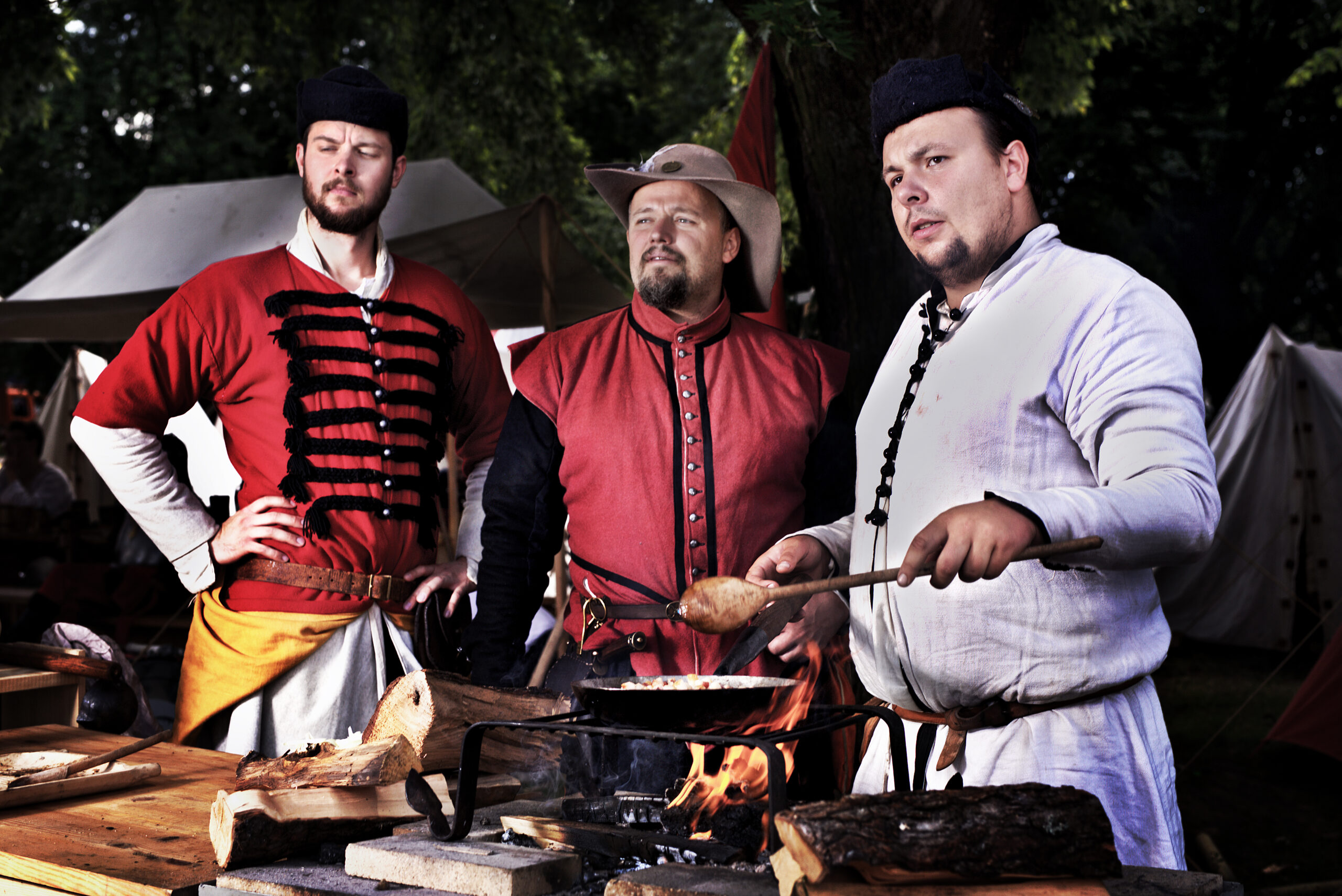 Stopniowo poszerzamy naszą rekonstrukcyjną ofertę o staropolską kuchnię, stanowisko cyrulika, pisarza, krawca.