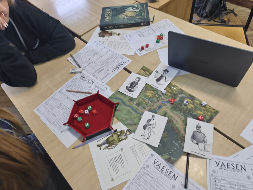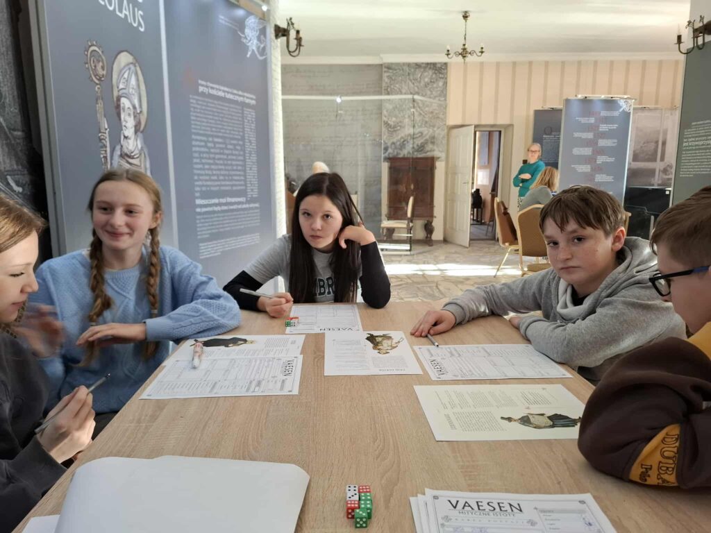 Gry fabularne (RPG) pozwalają na odkrywanie lokalnych historii, a przy tym rozwijają wyobraźnię, wzmacniają kompetencje językowe i społeczne. W ramach projektu przygotowane zostały 4 bazowe scenariusze inspirowane zderzeniem wsi galicyjskiej drugiej połowy XIX wieku z nowoczesnością. Wykorzystane zostały podczas aż 48 sesji RPG dla ok. 200 odbiorców – uczniów ze szkół podstawowych i ponadpodstawowych. Każda 4-5 osobowa drużyna zagrała w jeden, wybrany scenariusz.